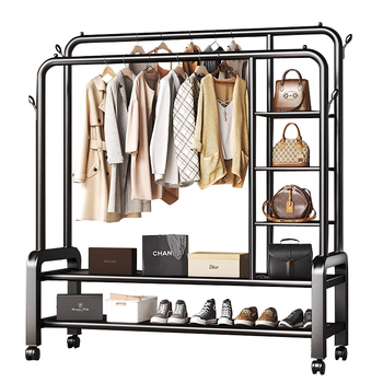 ชั้นวางเสื้อผ้าและชั้นวางรองเท้าแบบเสาคู่ใช้งานได้อเนกประสงค์ใช้ในห้องนั่งเล่นห้องนอนชั้นวางเสื้อผ้าเสื้อโค้ท